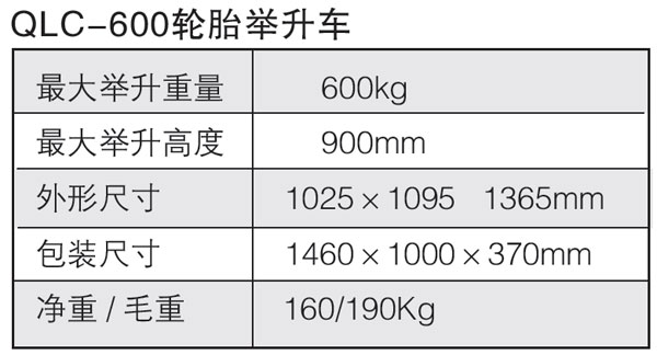 | 【產(chǎn)品名稱(chēng)】:QLC-600輪胎舉升車(chē) |